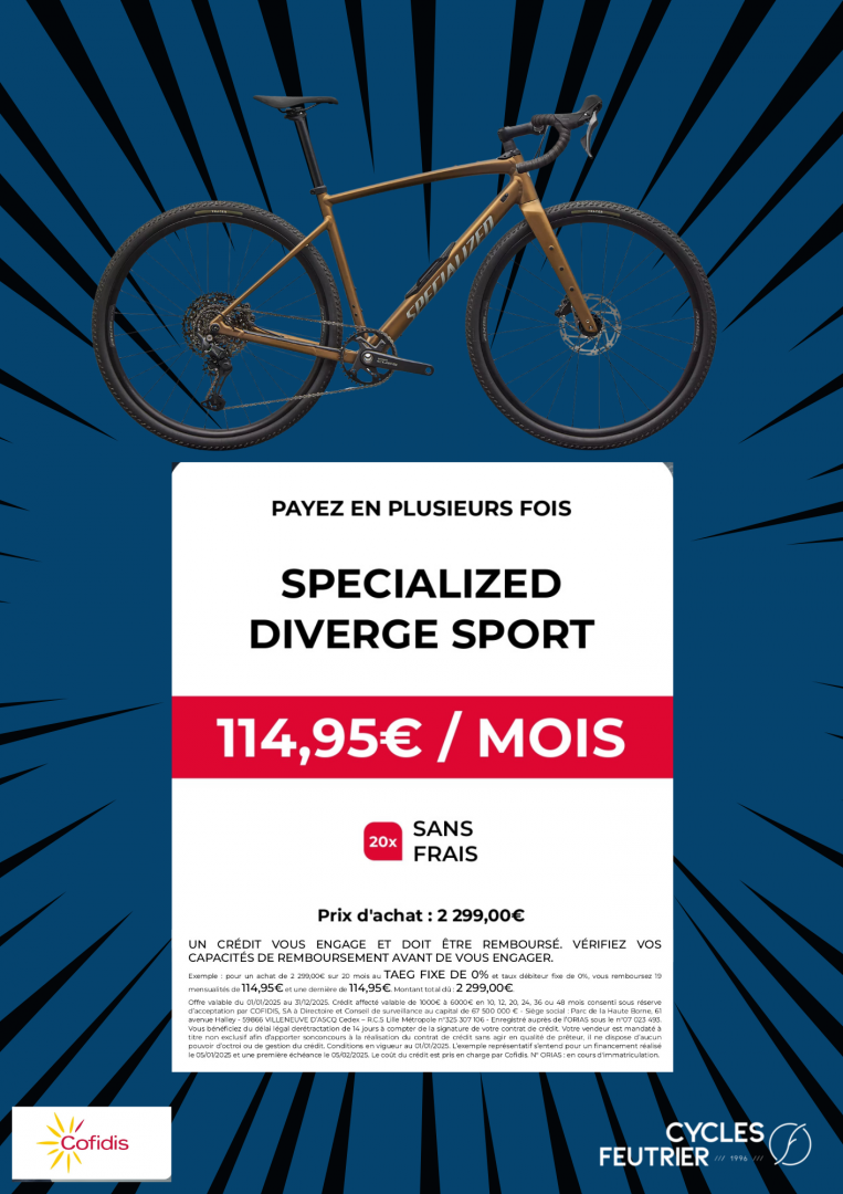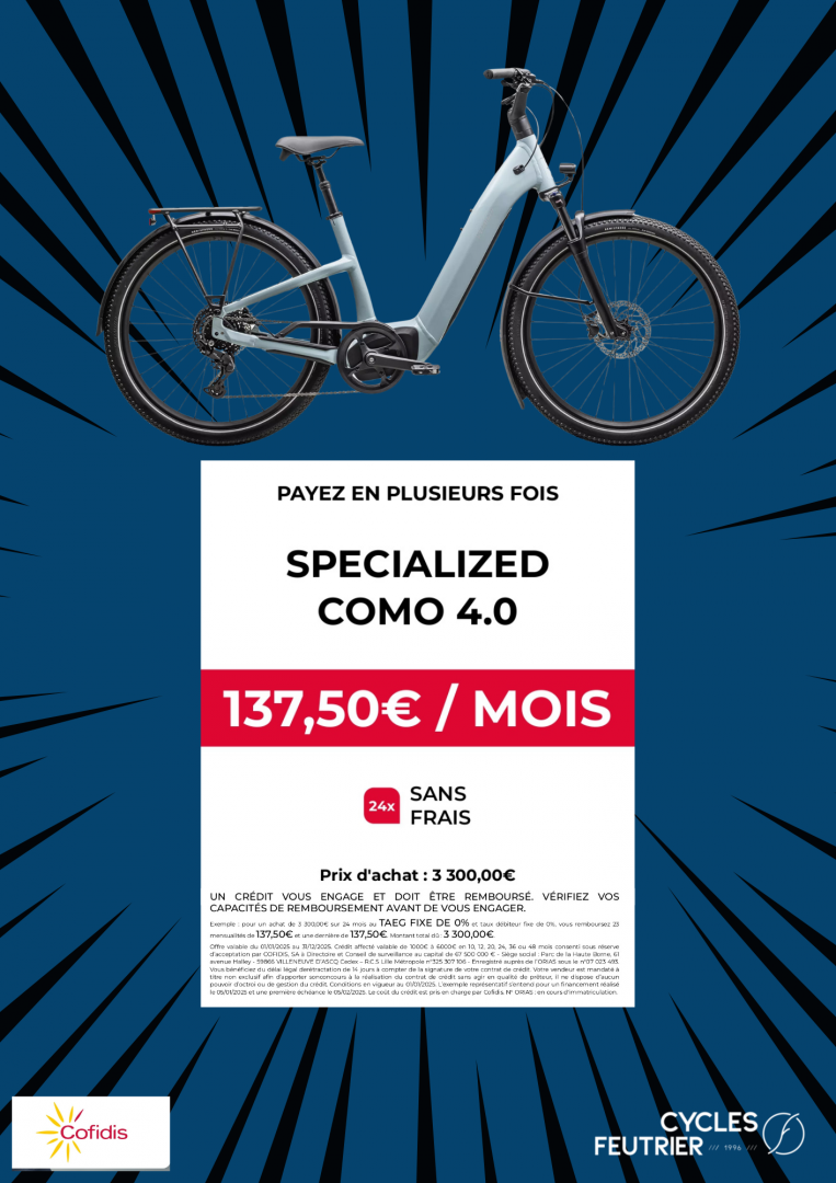 Chez Cycles Feutrier, nous vous accompagnons pour concrétiser votre projet vélo grâce à des solutions de financement simples et adaptées. En partenariat avec Cofidis, vous pouvez financer l’achat de votre vélo directement en magasin et répartir votre paiement sur plusieurs mensualités.